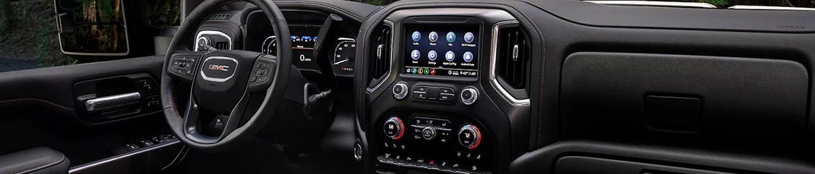 The cabin of the Sierra 3500 HD offers best-in-class front head and legroom. Depending on the trim you opt for, the interior can range from utilitarian and functional to plush and luxurious. The base trim is equipped with vinyl floor covering, vinyl seat covering, and single-zone climate control. You also receive a 7-inch infotainment system with six speakers, Bluetooth, and Apple CarPlay and Android Auto integration. The higher trims add incremental levels of luxury with features such as heated and ventilated front seats, perforated leather upholstery, dual-zone automatic climate control, a heated and leather-wrapped steering wheel, and an auto-dimming rearview mirror.