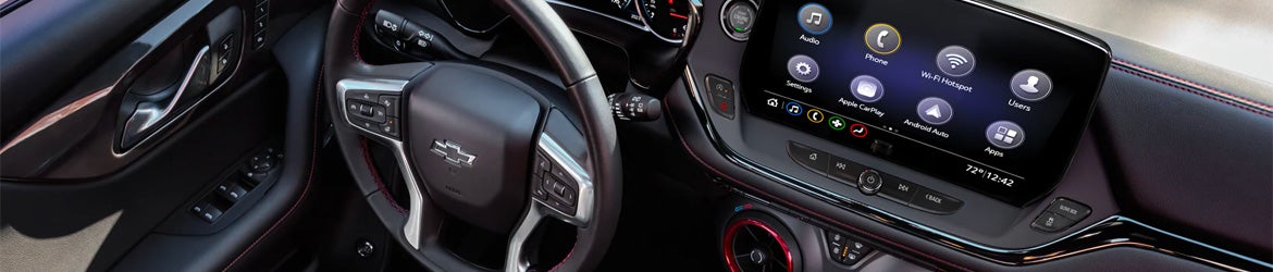 The 2023 Chevy Blazer blends comfort and convenience flawlessly with an interior created for passengers and drivers alike. The 2LT features keyless entry with a push-button start, satellite radio, four USB ports, a power-adjustable driver's seat, a six-speaker stereo system, and a 10-inch touchscreen with wireless Apple CarPlay and Android Auto. On the 3LT, you also get heated front seats and leather upholstery.